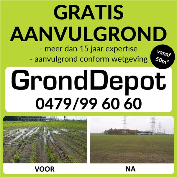 Gratis aanvulgrond/opvulgrond te verkrijgen, geschikt voor ophoging van tuin, bouwperceel of landbouwgrond, zonder stenen. Met gratis transport en levering over heel Vlaanderen. Minimum 100m³, levering volgens beschikbaarheid.