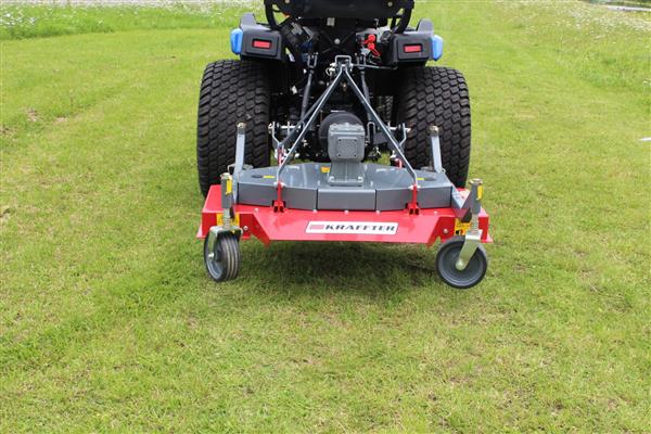 De Kraffter cirkelmaaier is voorzien Cat. 1 driepuntsaansluiting en komt inclusief aftakas. Standaard voorzien van 4 massieve kunststof wielen. De 3 messen hebben een ruime overlap, zodat al het gras en één werkgang wordt weg gemaaid. De 3 puntsophanging is voorzien van pendelaankoppelingen waardoor de maaier volledig terreinvolgend maait en een gelijkmatige maaihoogte wordt geborgd. De maaier is voorzien van SKF lagers en Gates V-snaren. Door zijn goede prijs-kwaliteit verhouding is deze maaier zowel hobby matig als professioneel inzetbaar.